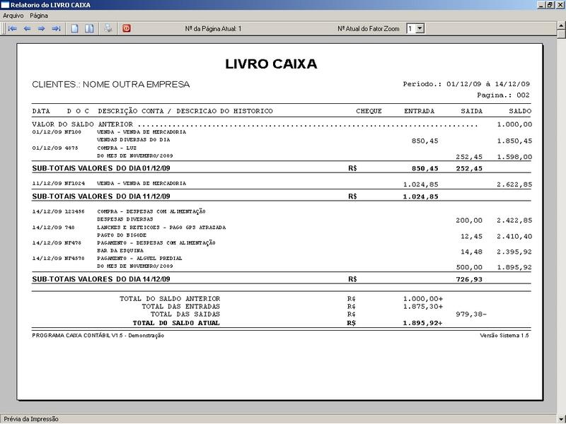 Relatório do Caixa + Termo de Abertura + Termo de Encerramento +