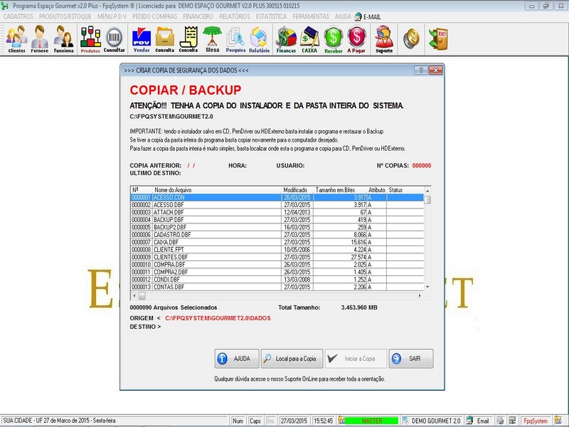 - Opção de Backup do Programa