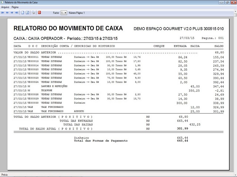 Relatório do Movimento de Caixa