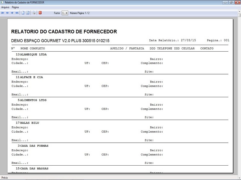 Relatório de Fornecedores