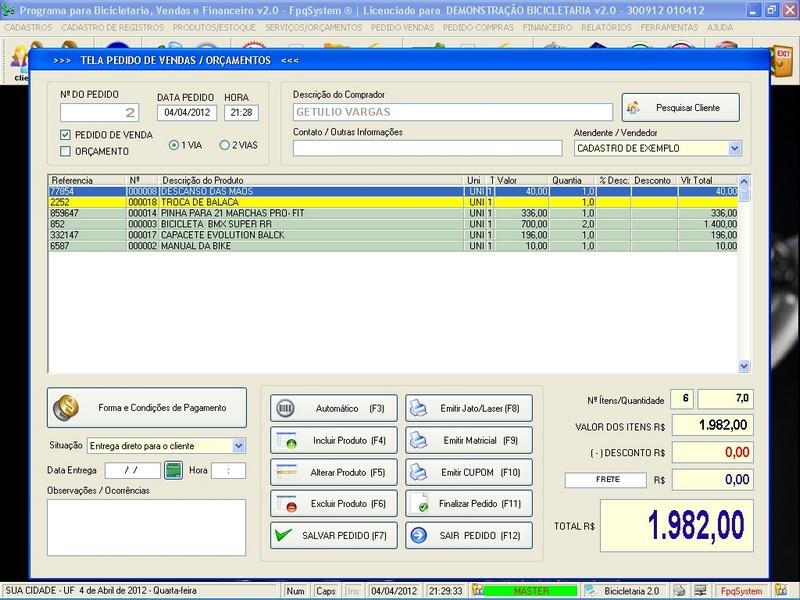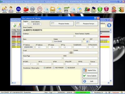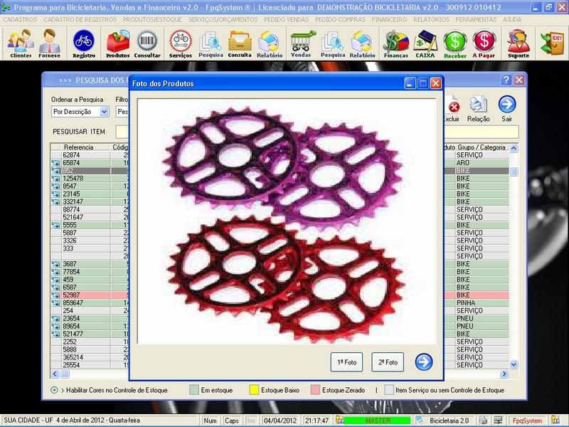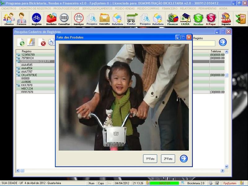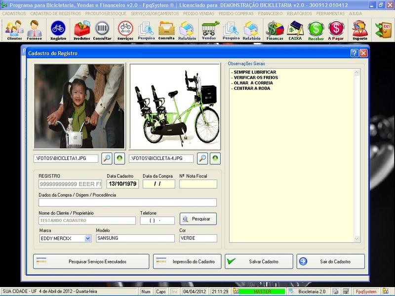 de Clientes / Fornecedores / Atendentes / Cadastro de Bicicletas / Foto