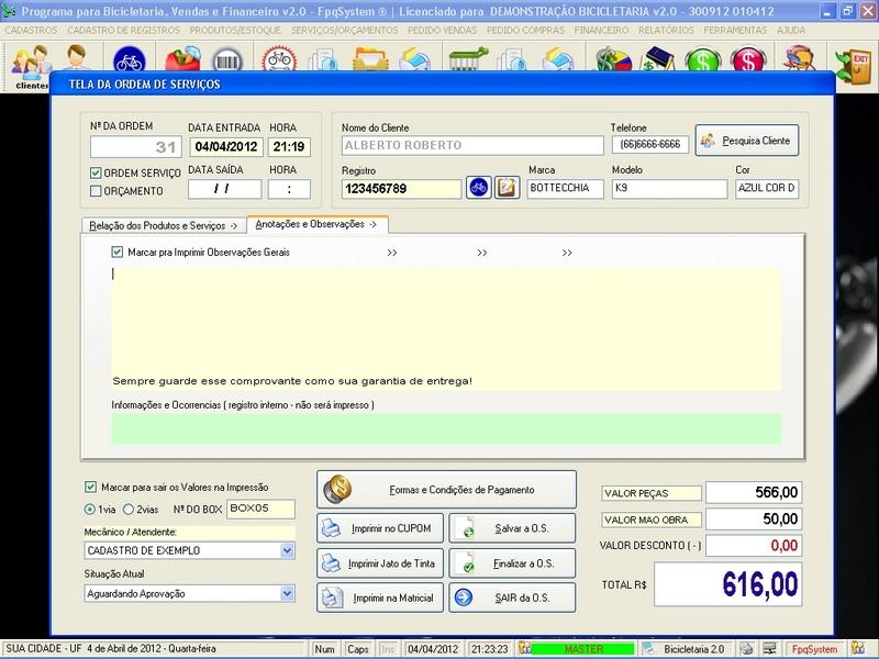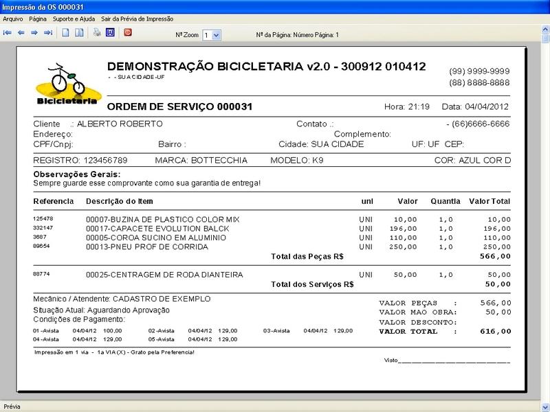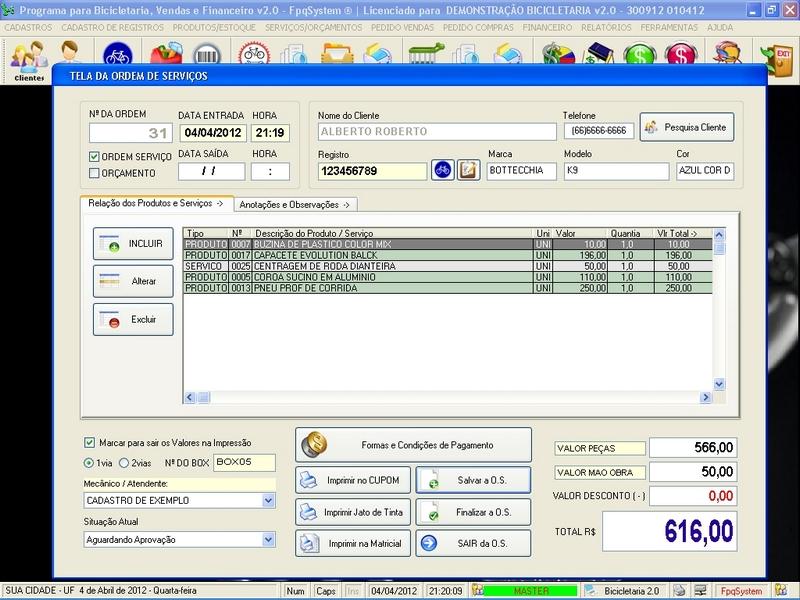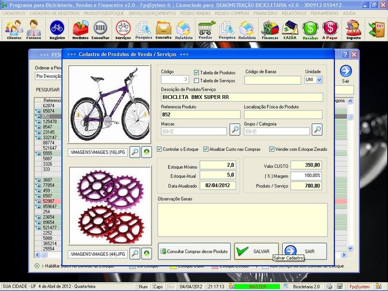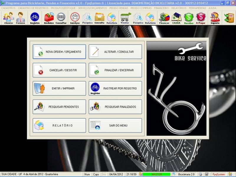 para Loja de Bicicletaria com Serviços, Vendas, Estoque e Financeiro