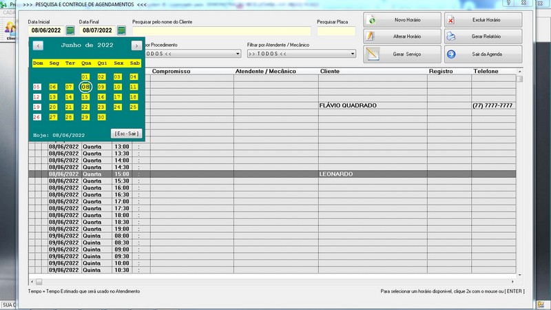 completo / Aviso Agendamento / Relatório Estatísticas