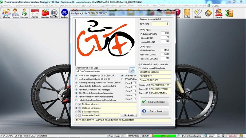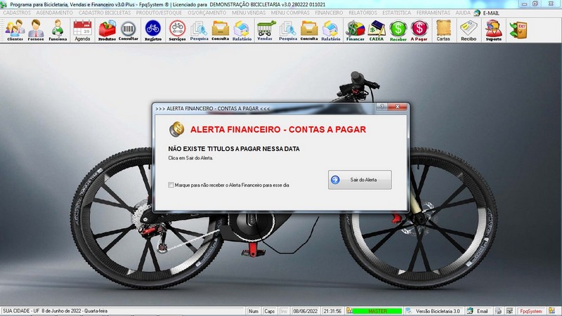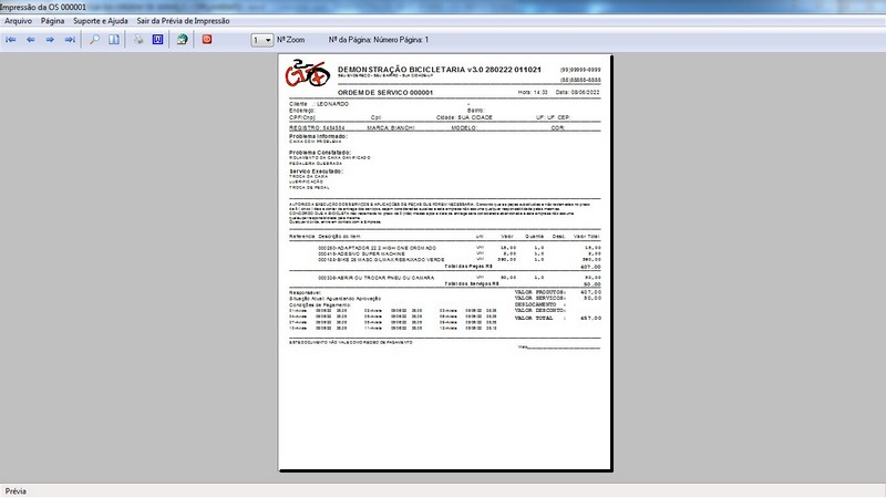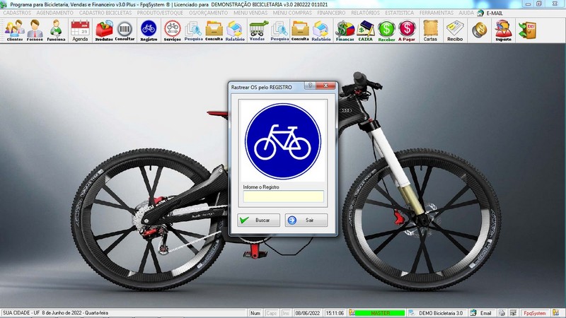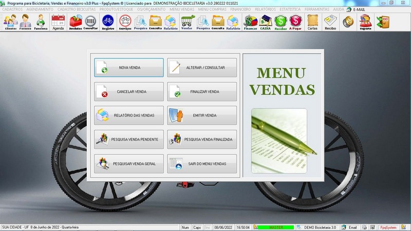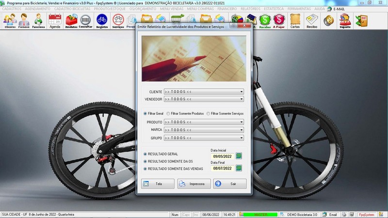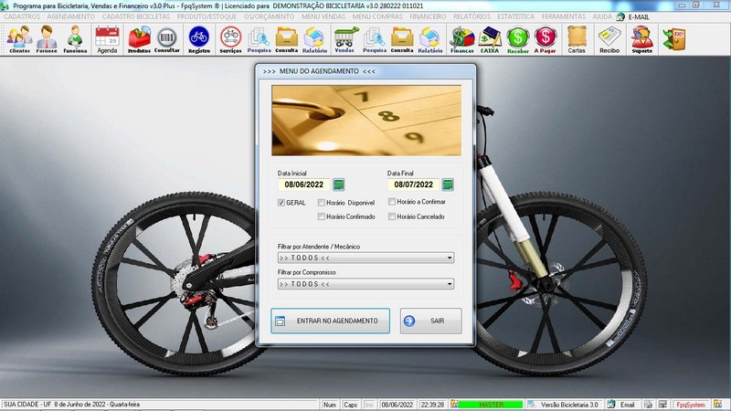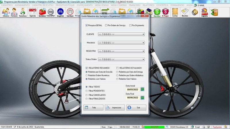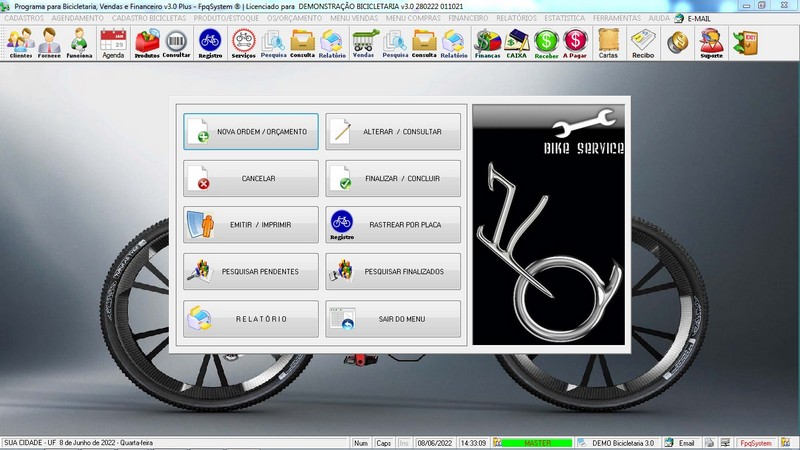 para Loja de Bicicletaria com Serviços, Vendas, Estoque e Financeiro