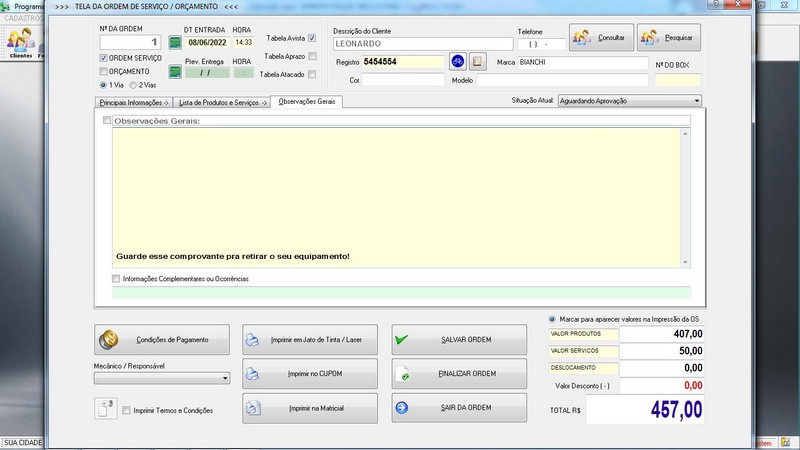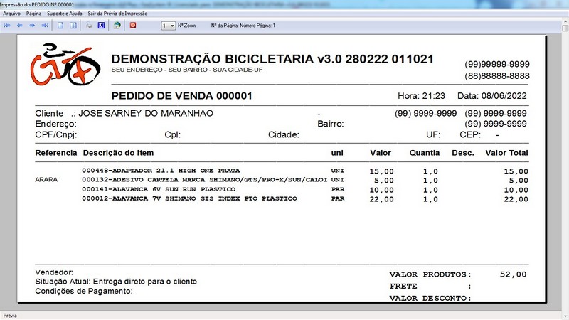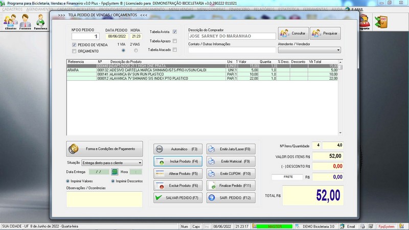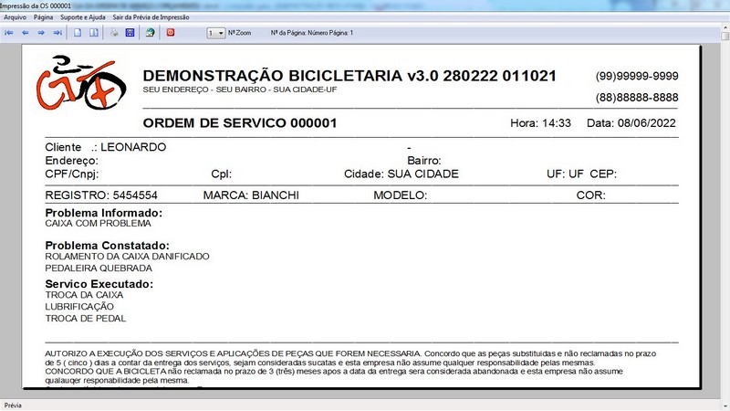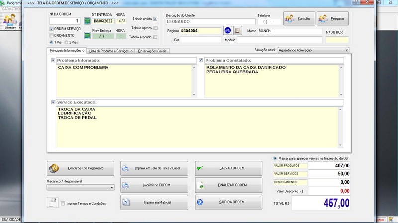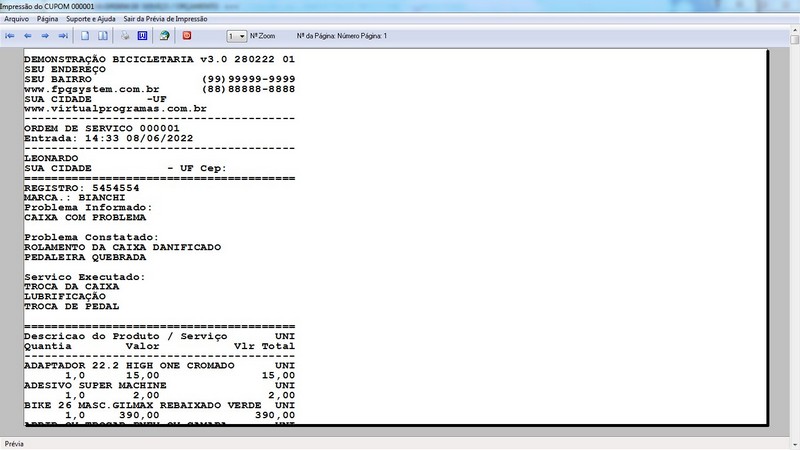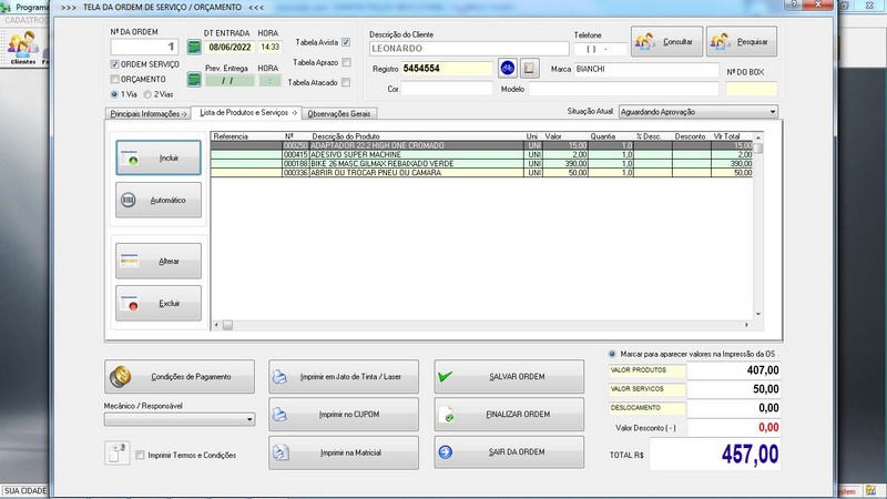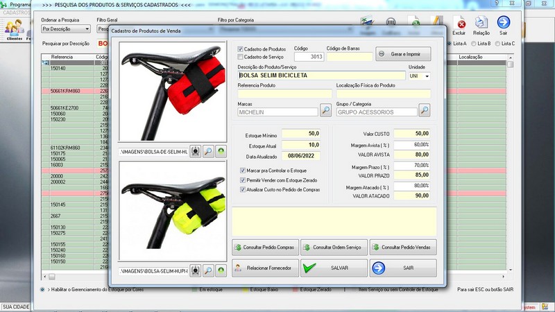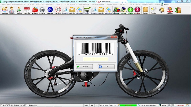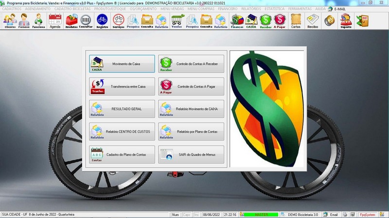 para Loja de Bicicletaria com Serviços, Vendas, Estoque e Financeiro