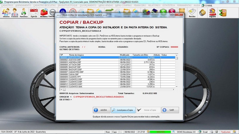 - Opção de Backup do Programa