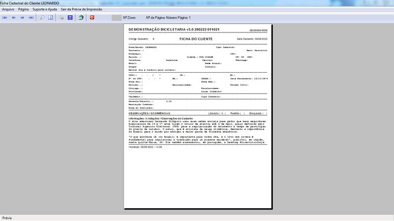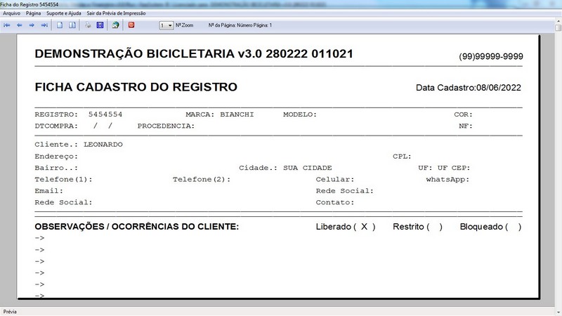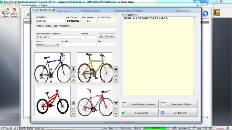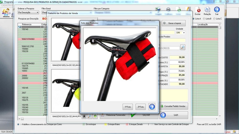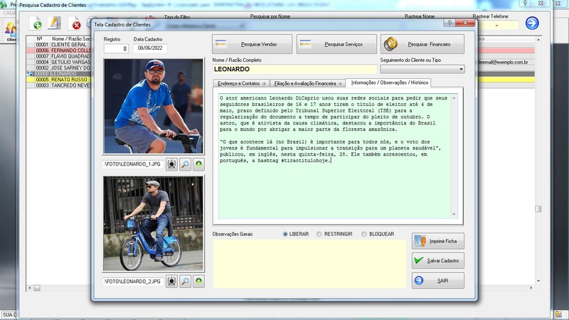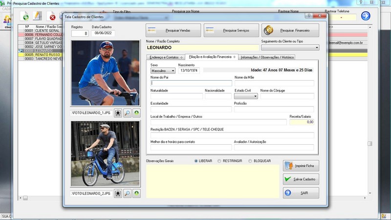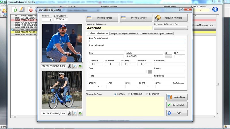 de Clientes / Fornecedores / Atendentes / Cadastro de Bicicletas / Foto