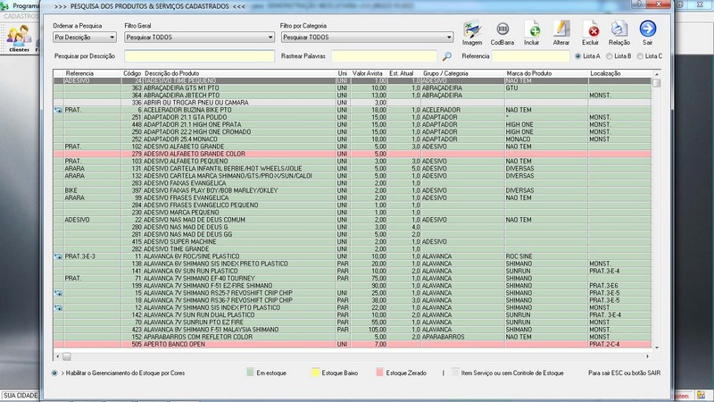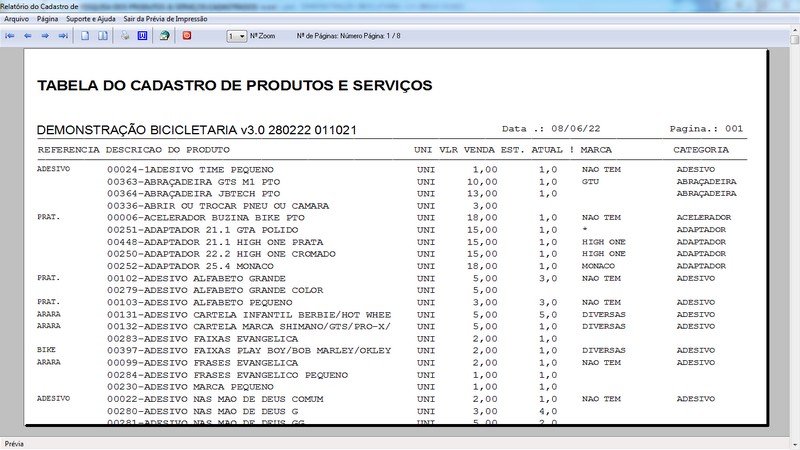 das Bicicletas / Relatório do Cadastro / Tabela de Produtos e