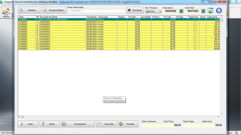 Serviços / Controle de Caixa / Contas a Receber / Contas a