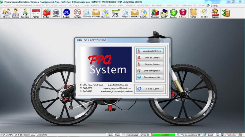 - Suporte e Atendimento OnLine via site ou menu ajuda do programa