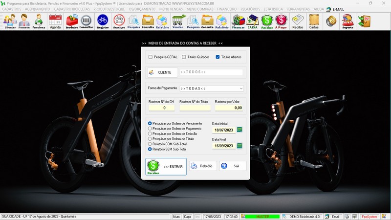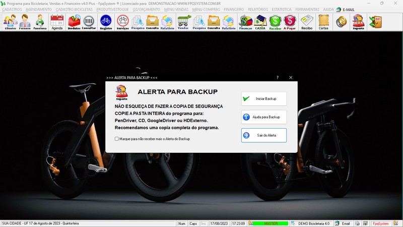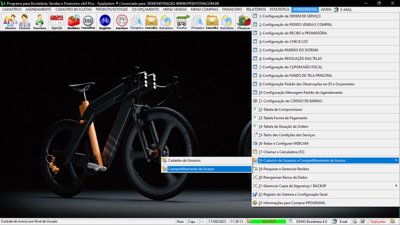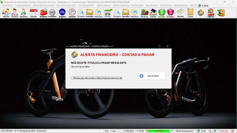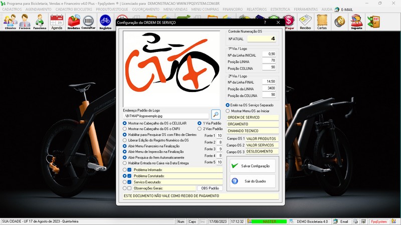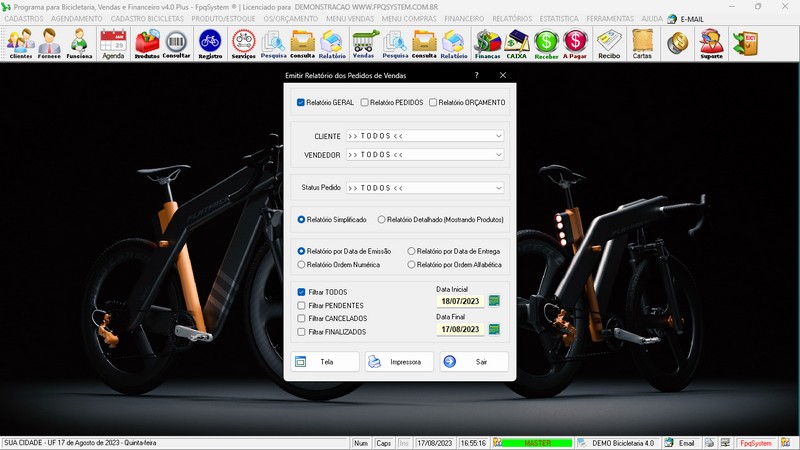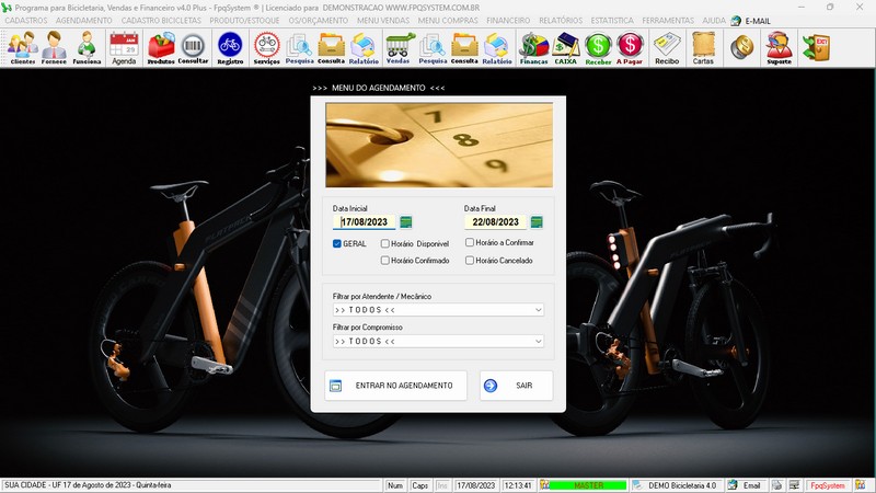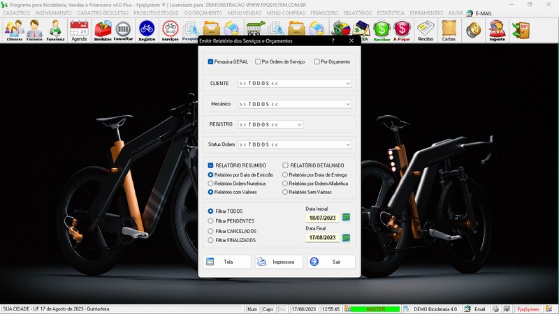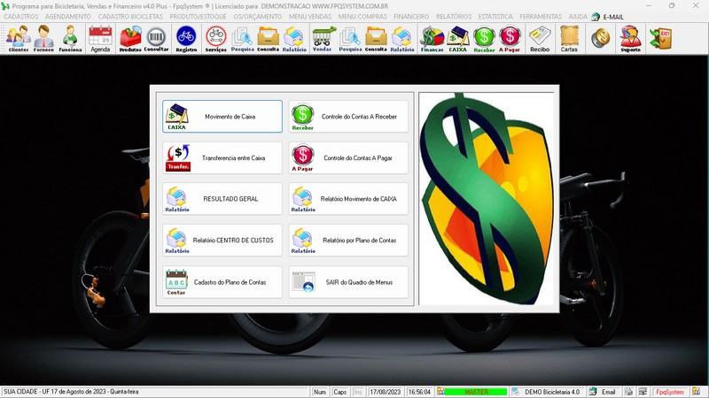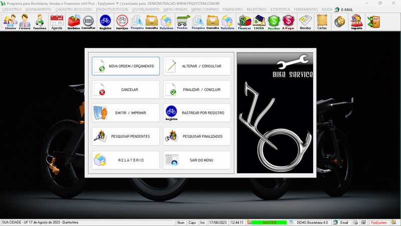 para Loja de Bicicletaria com Serviços, Vendas, Estoque e Financeiro