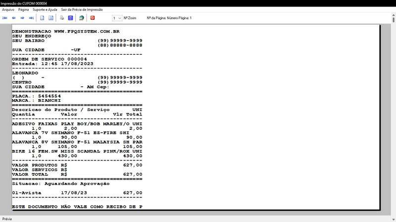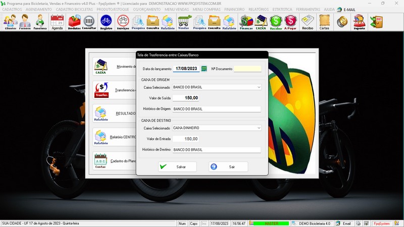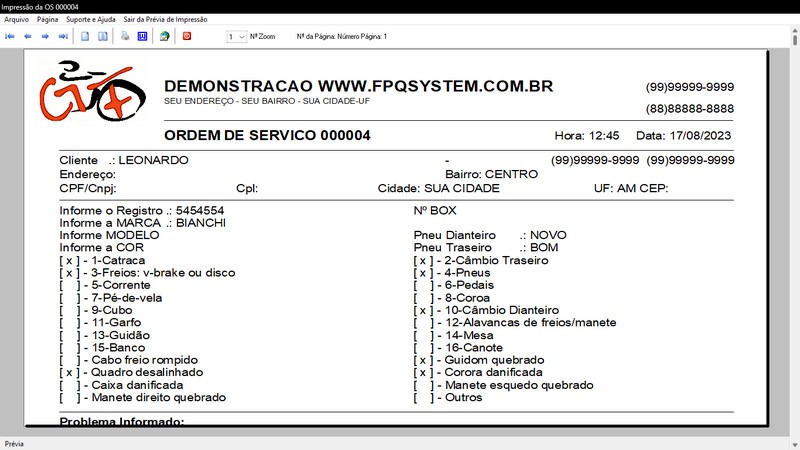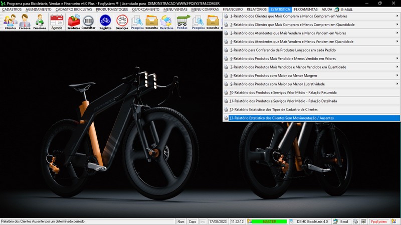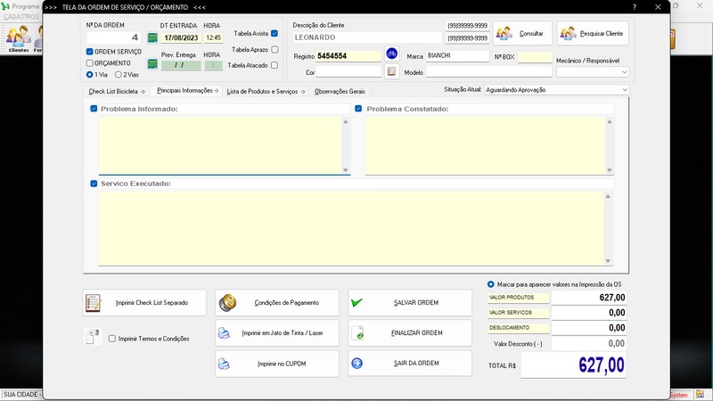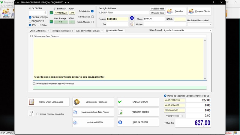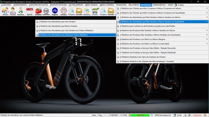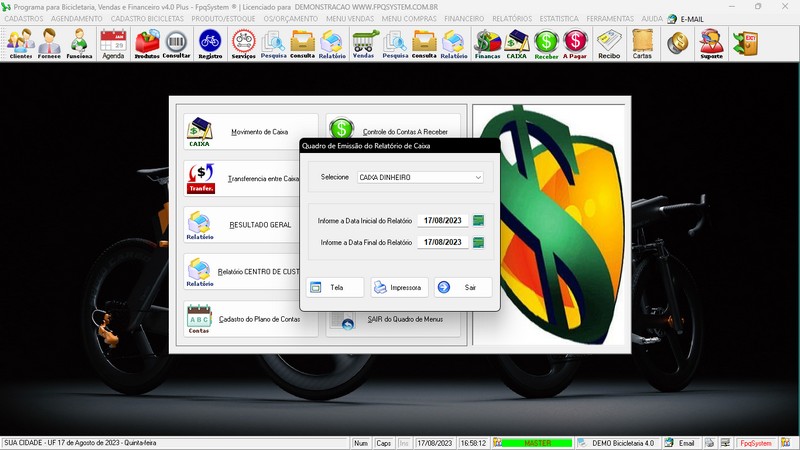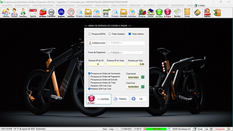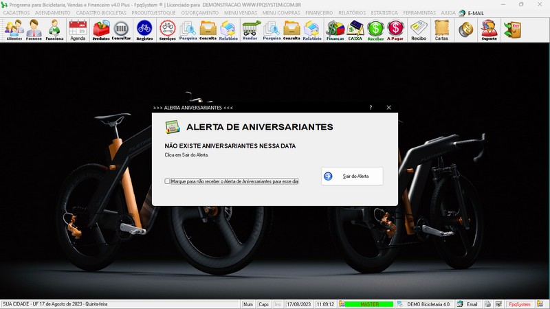 para Loja de Bicicletaria com Serviços, Vendas, Estoque e Financeiro