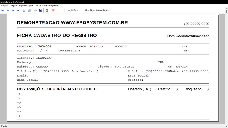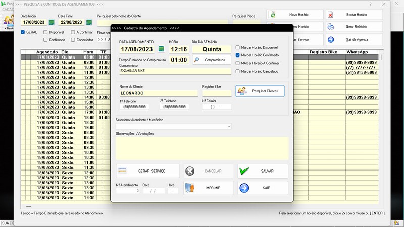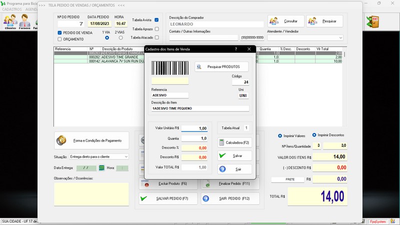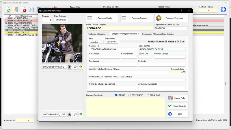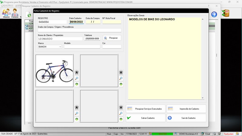 de Clientes / Fornecedores / Atendentes / Cadastro de Bicicletas / Foto