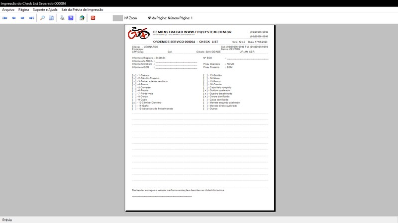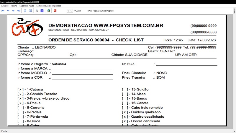 das Bicicletas / CheckList Bike / Relatório do Cadastro / Tabela de