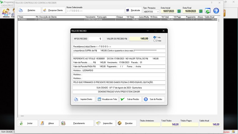 Serviços / Controle de Caixa / Contas a Receber / Contas a