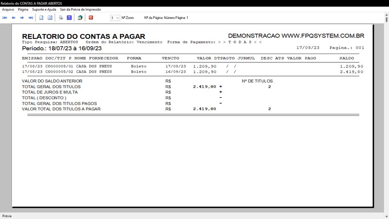 Pagar / Relatório dos