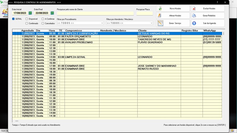 completo / Aviso Agendamento / Relatório Estatísticas