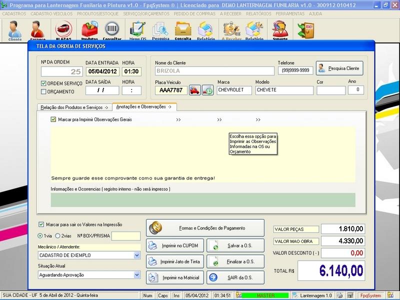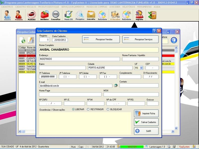 Clientes / Fornecedores / Mecânicos / Cadastro de Placas Cadastro de