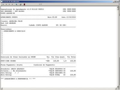 na impressão do Atendimento