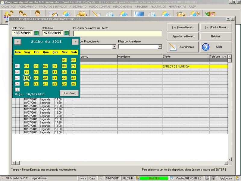 por data e hora / Atendimento / Relatório do Atendimento / Cadastro de