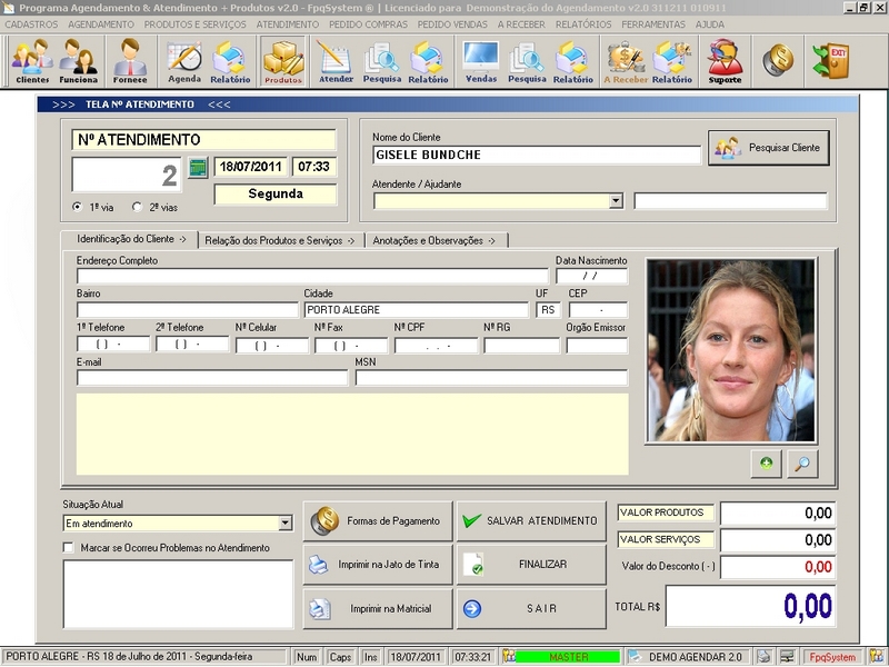 na impressão do Atendimento