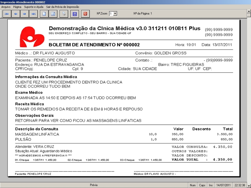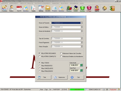 Atendimento / Relatório dos Atendimentos / Contas a Receber