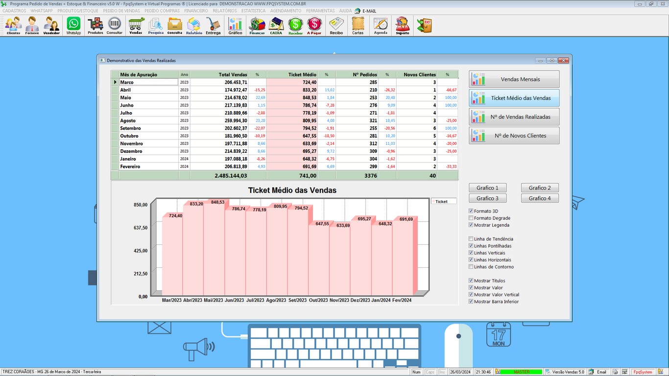 vendas, ajudando os gerentes a tomar decisões informadas. Essa versão ainda conta com relatórios estatísticos,