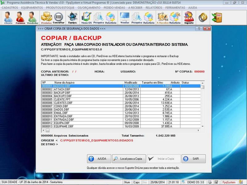 - Opção de Backup do Programa