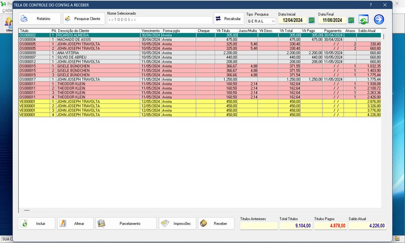 Controle de Estoque / Contas a Receber / Relatório de