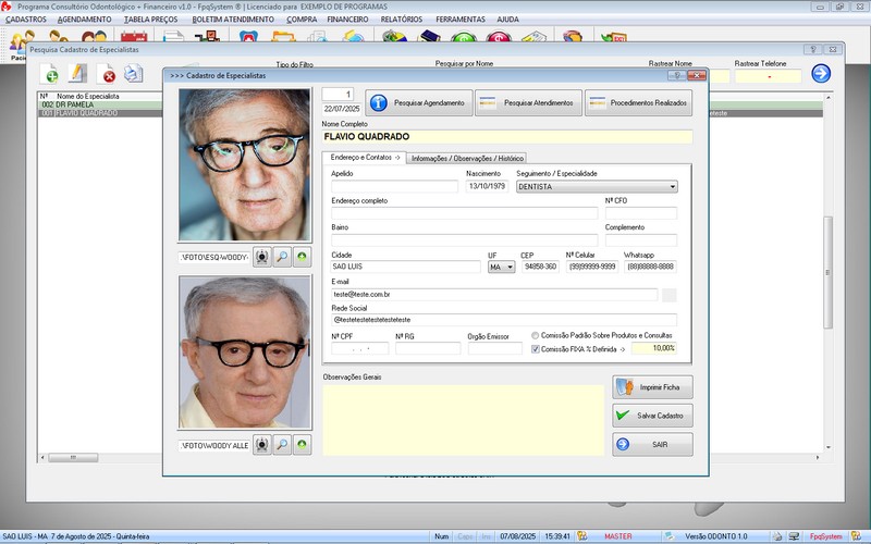 / Agendamentos / Cadastro de Pacientes / Cadastro de Especialistas /