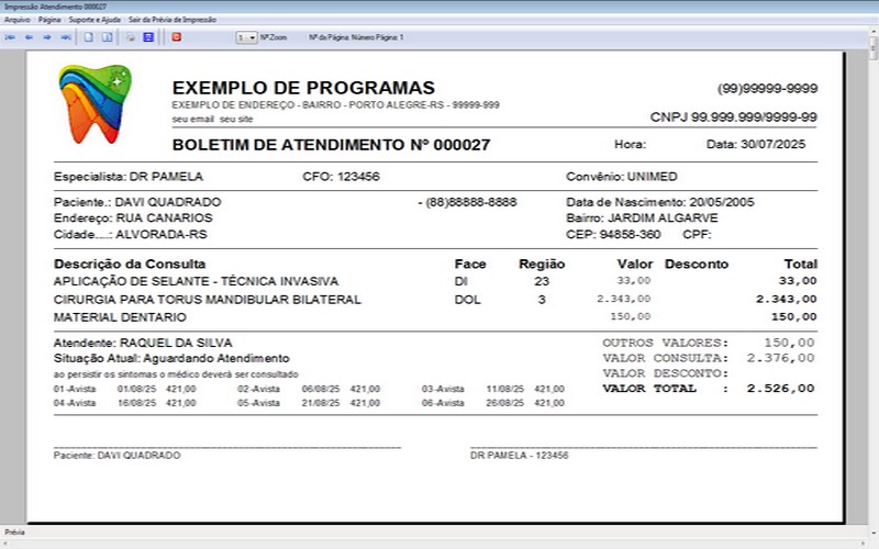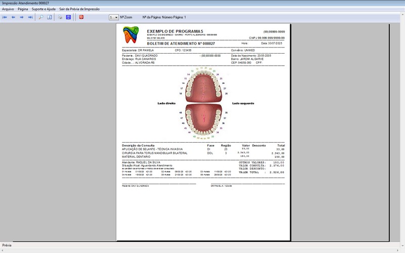 na impressão do Atendimento