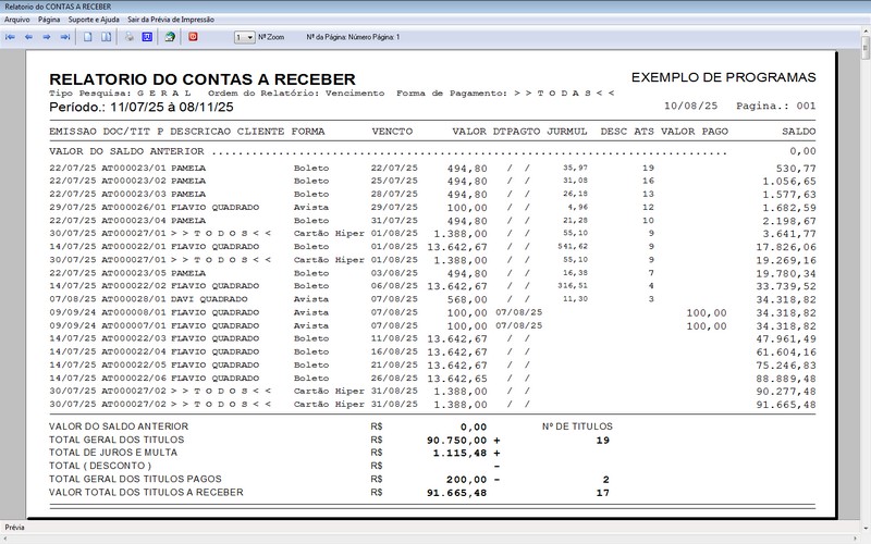 Contas a Pagar / Recibo de Pagamento / Exames Médicos / Relatório