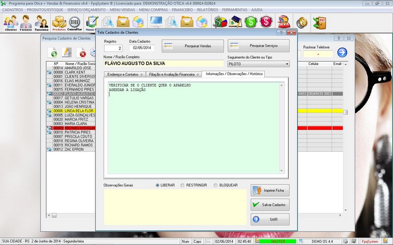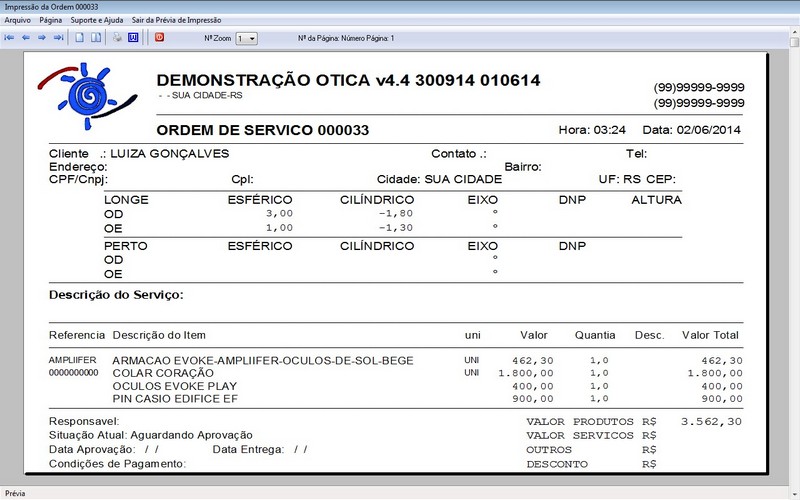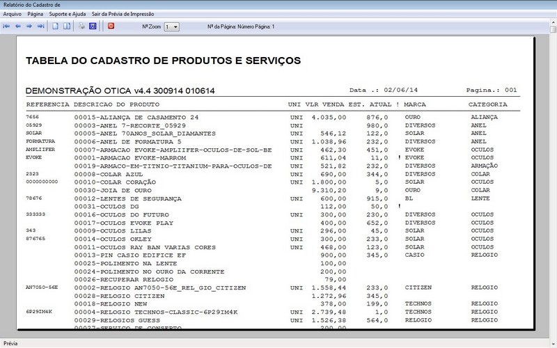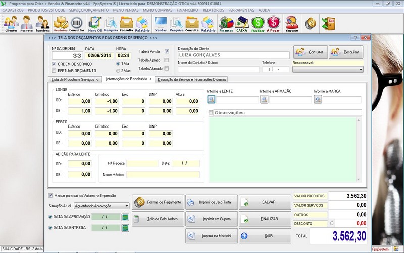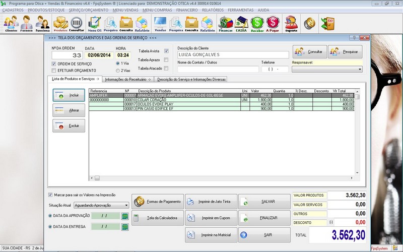 Programa para Ótica e Relojoalheria