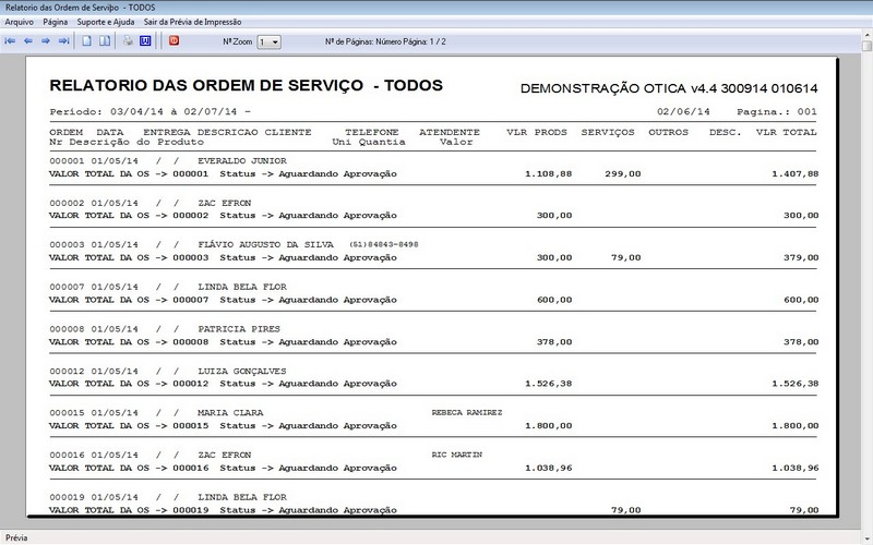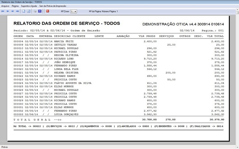 Relatório das Ordens de Serviço