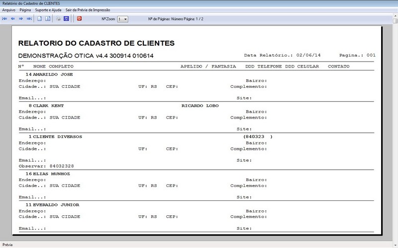 Relatório dos Clientes Cadastrados