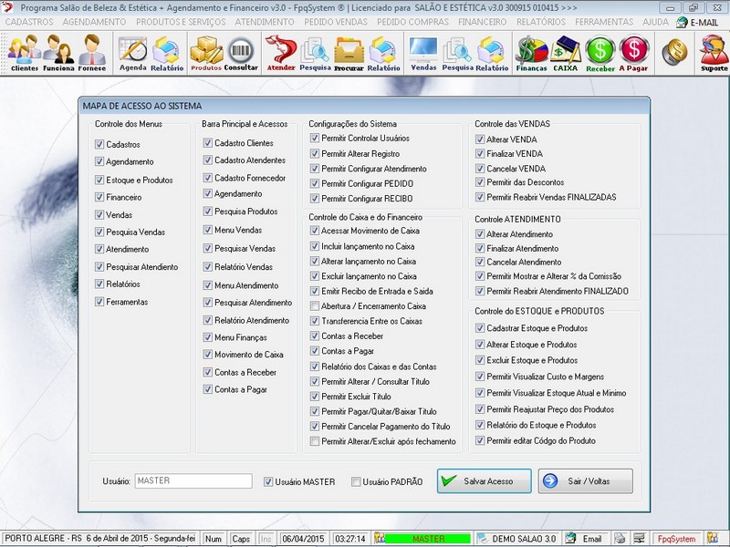 / Controle de Estoque / % Comissão dos Serviços / Acesso por Nivel de