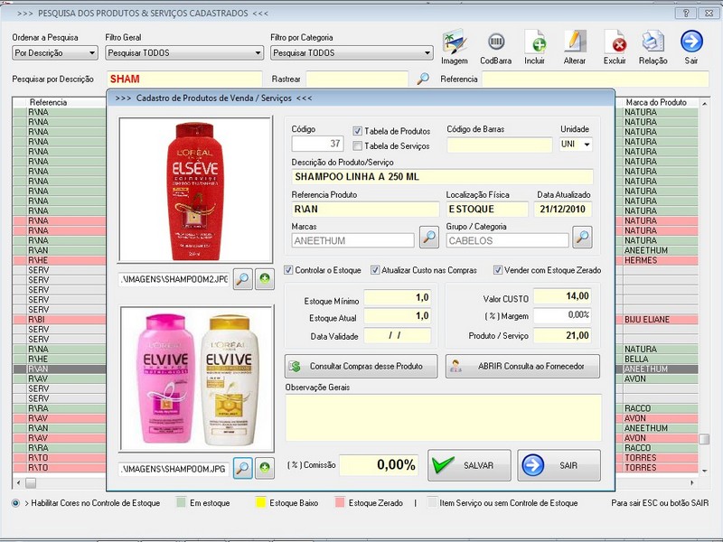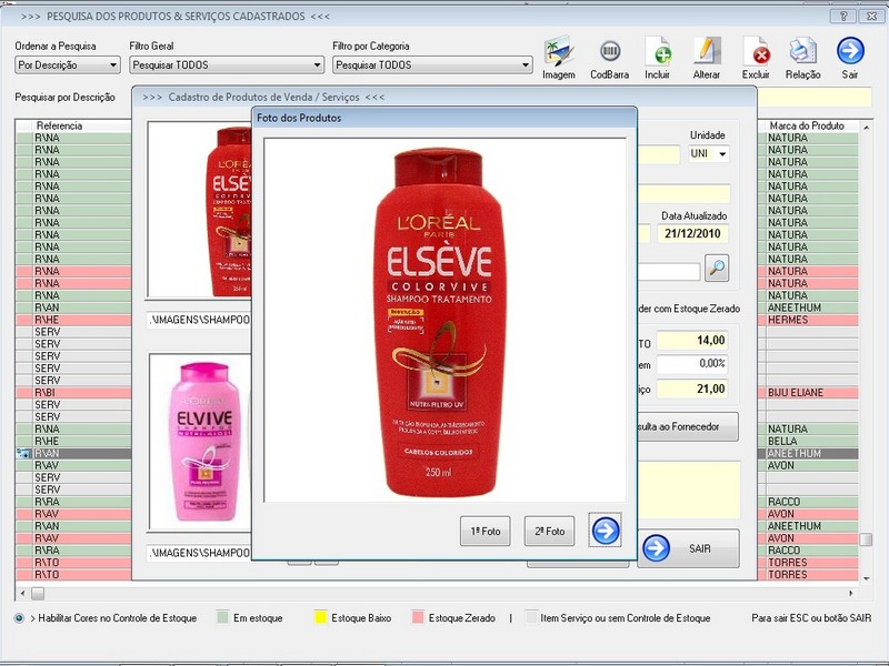 Balcão / Relatório de Vendas / Cadastro de Produtos / Foto nos Produtos