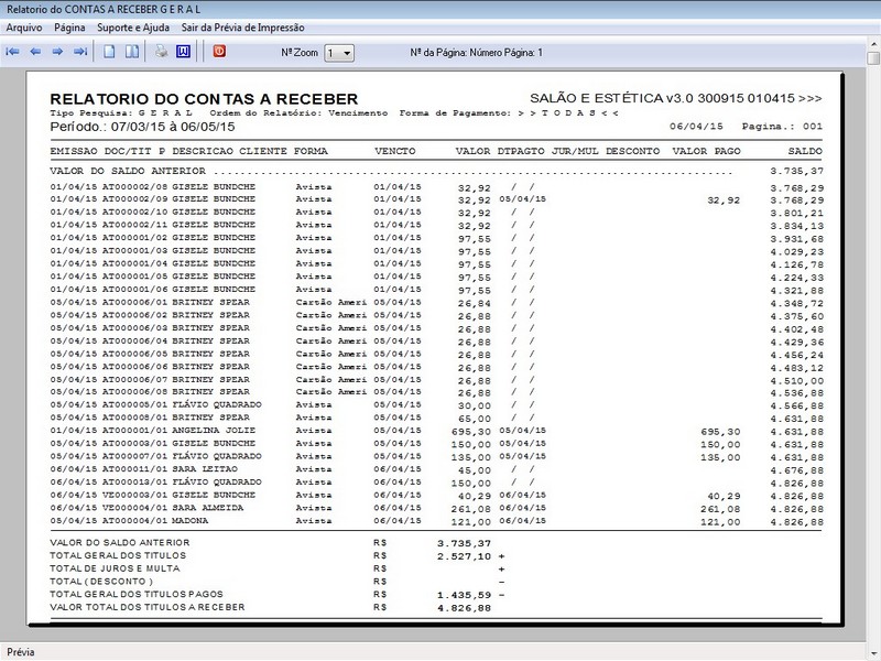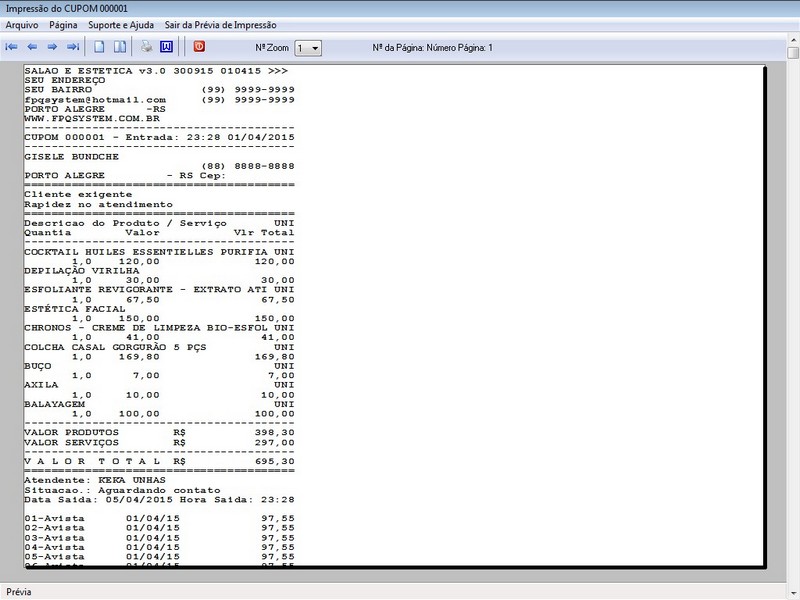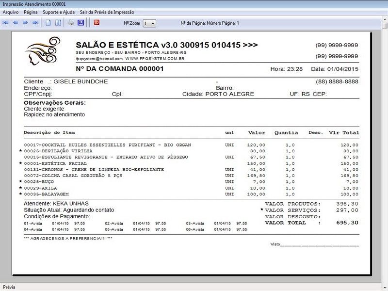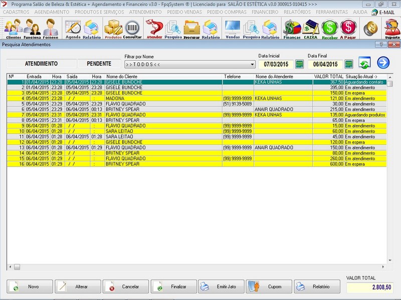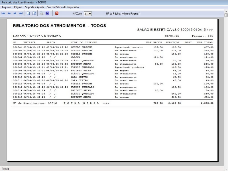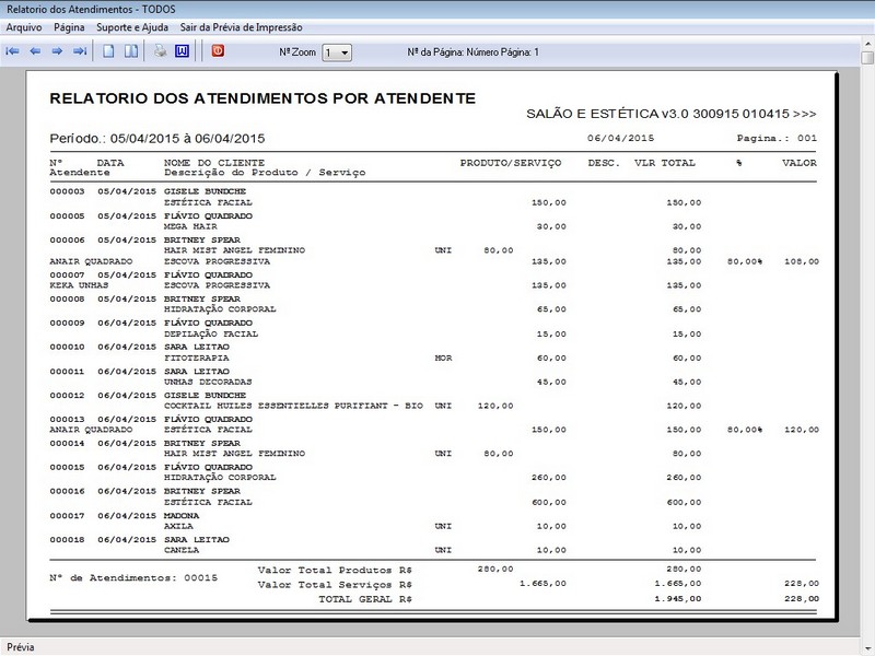 / Relatório dos Atendimentos / Relatório de Comissão / Vendas no