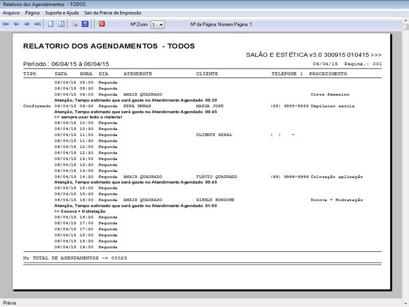 Fornecedores / Atendentes / Agendamento / Relatório de Agendamentos