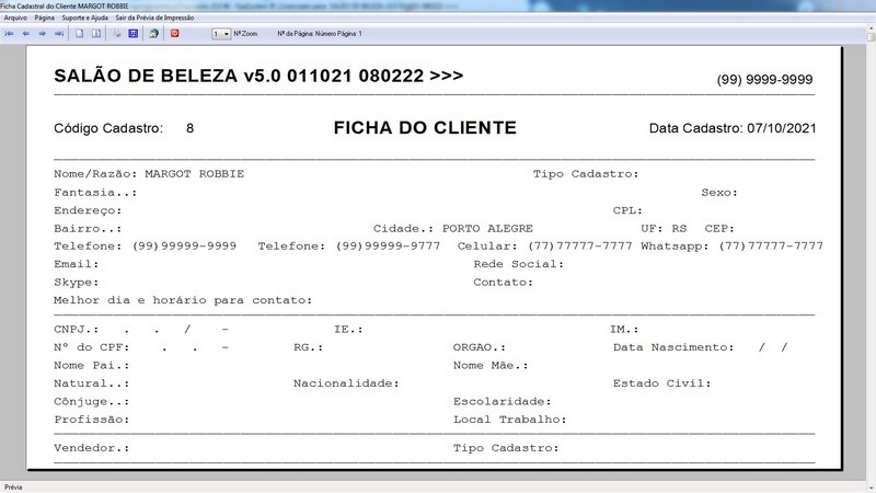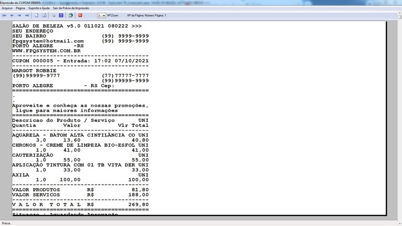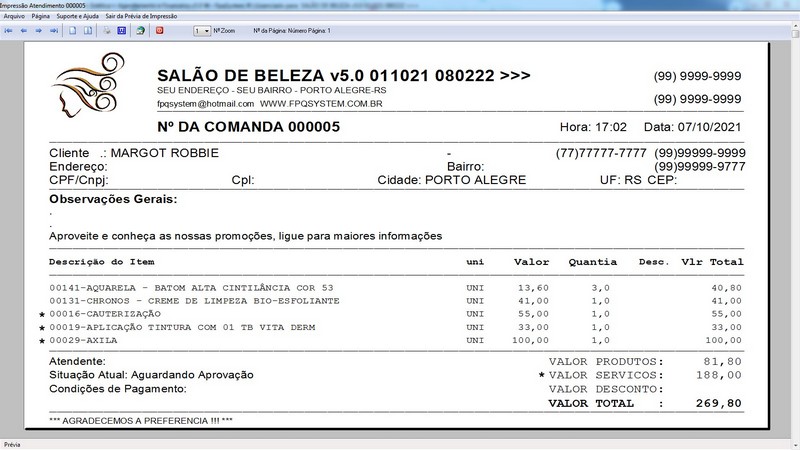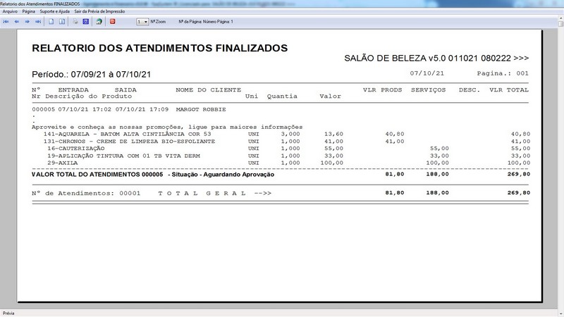 na impressão do Atendimento