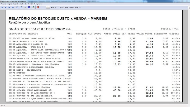 / % Comissão dos Serviços / Controle de Estoque / Acesso por Nivel de