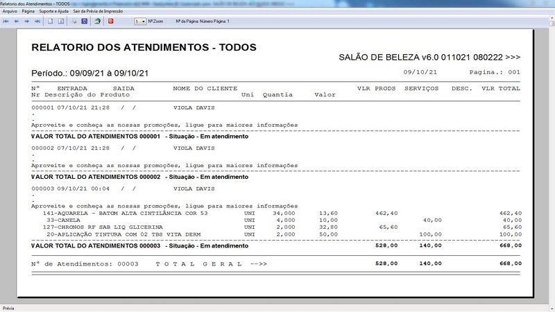 / Relatório dos Atendimentos / Relatório de Comissão / Vendas no