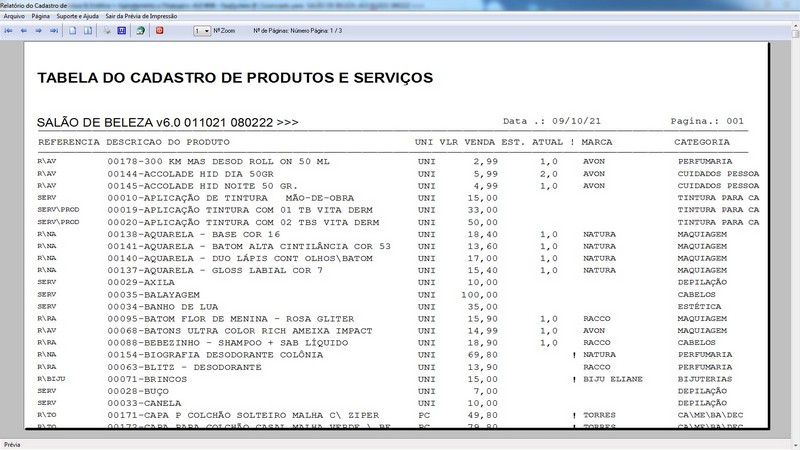 / % Comissão dos Serviços / Controle de Estoque / Acesso por Nivel de