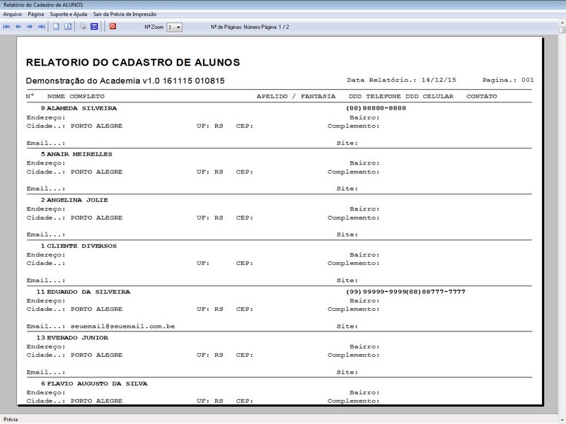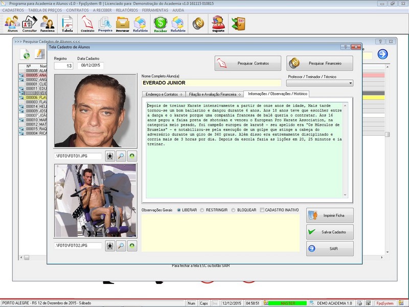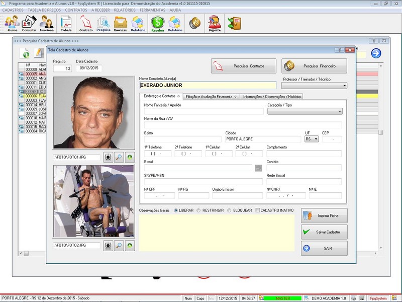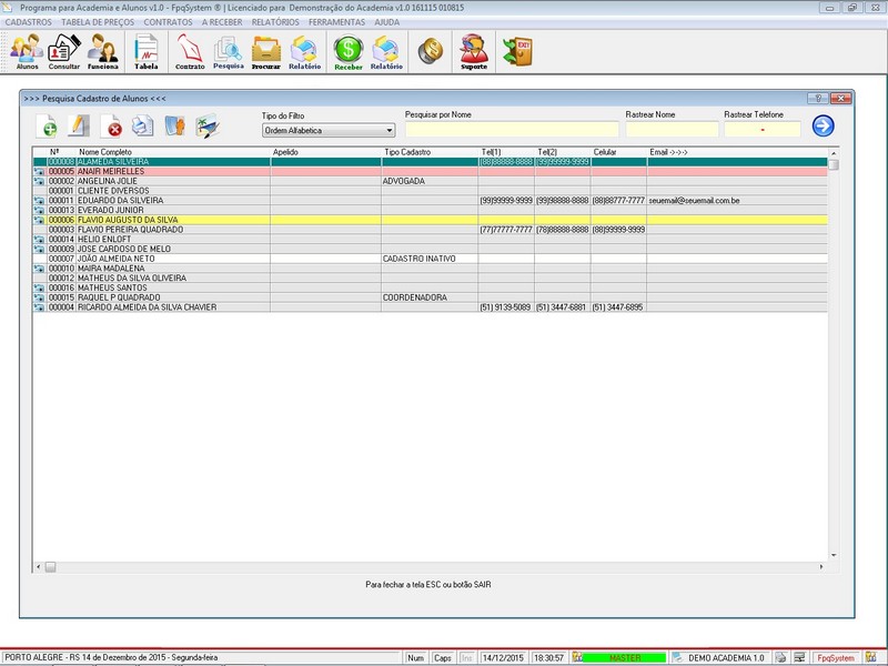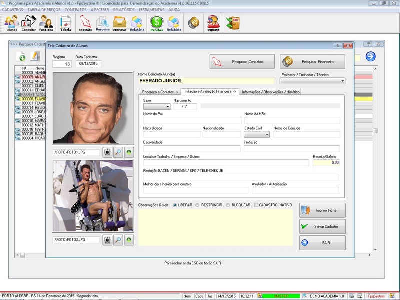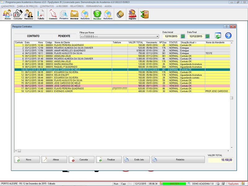 Contratos / Cadastro de Alunos com foto / Atendentes / Relatório dos