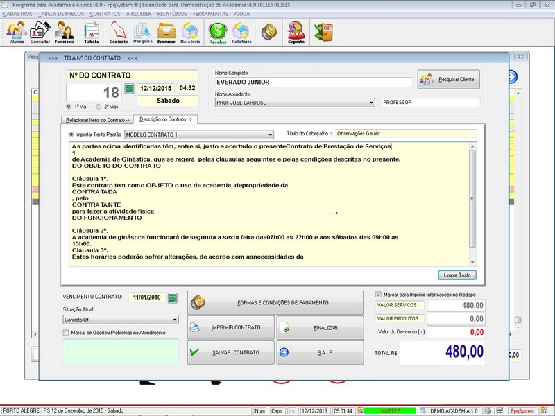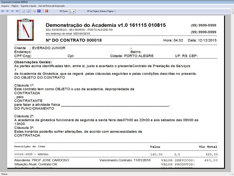 para Academia com Controle de Contratos v1.0