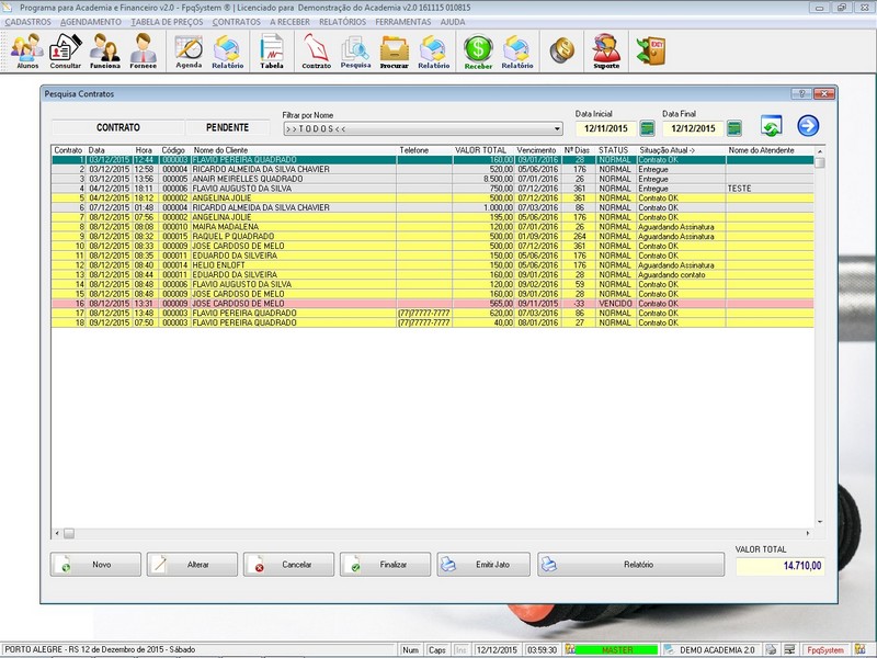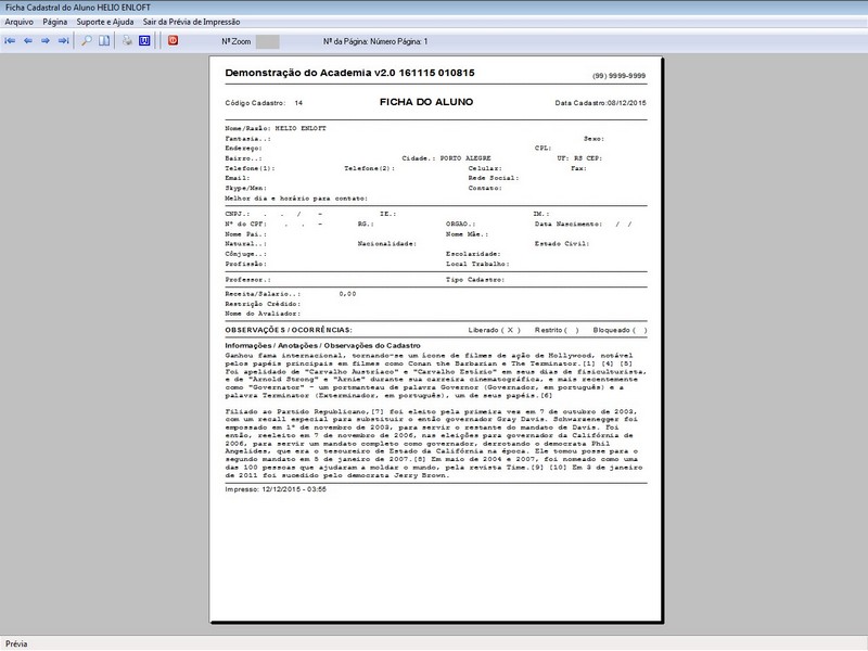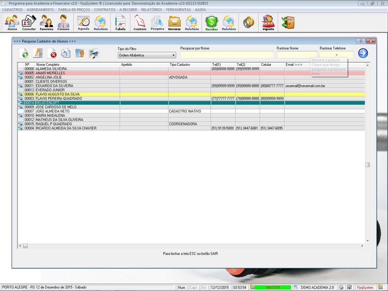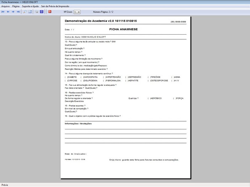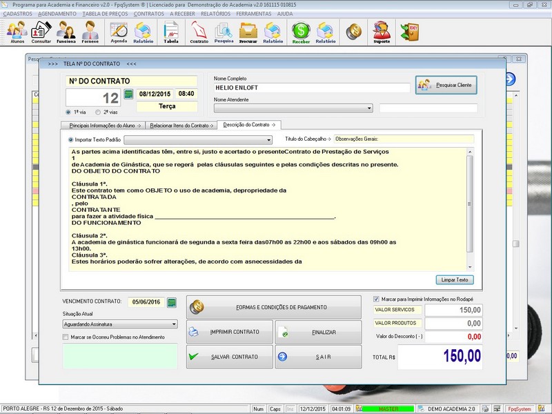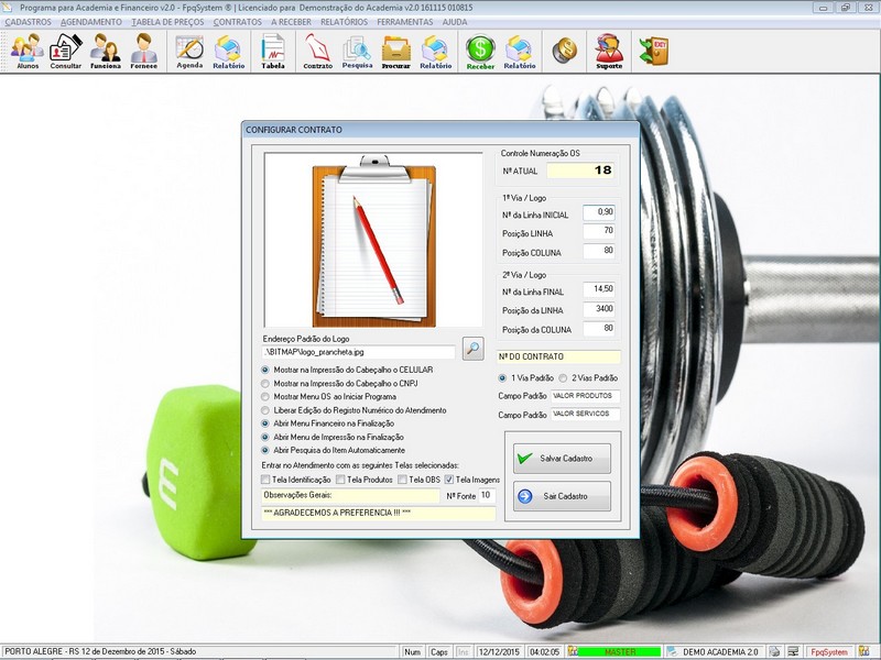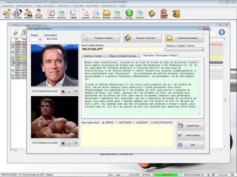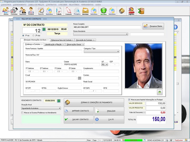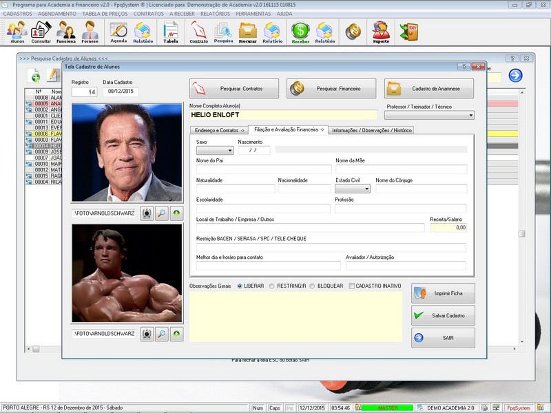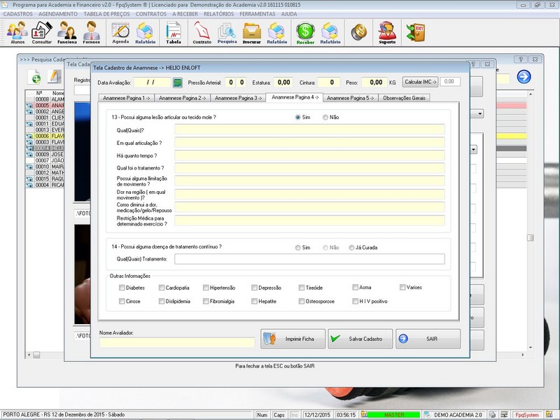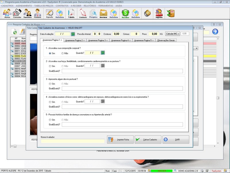 Contratos / Cadastro de Alunos com foto / Cadastro de Anamnese /
