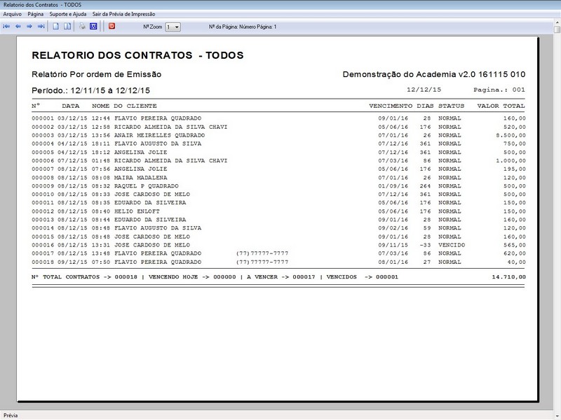 Contratos / Aniversariantes / Tabela de Preço / Contas a Receber /