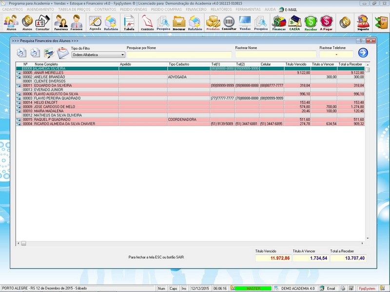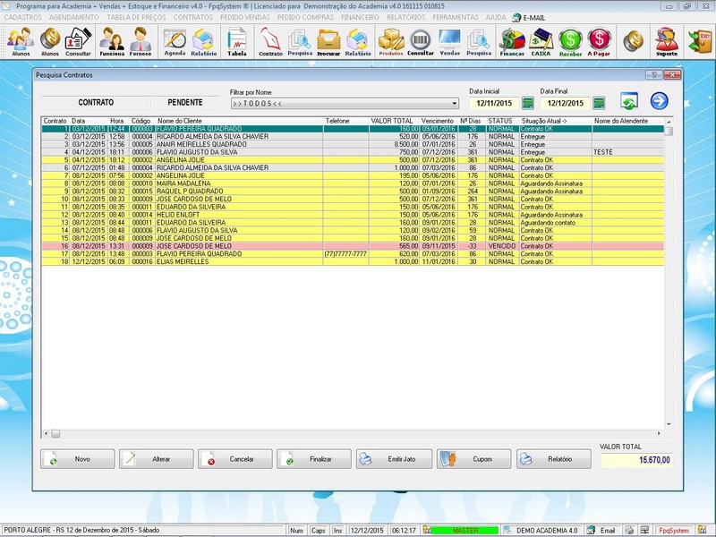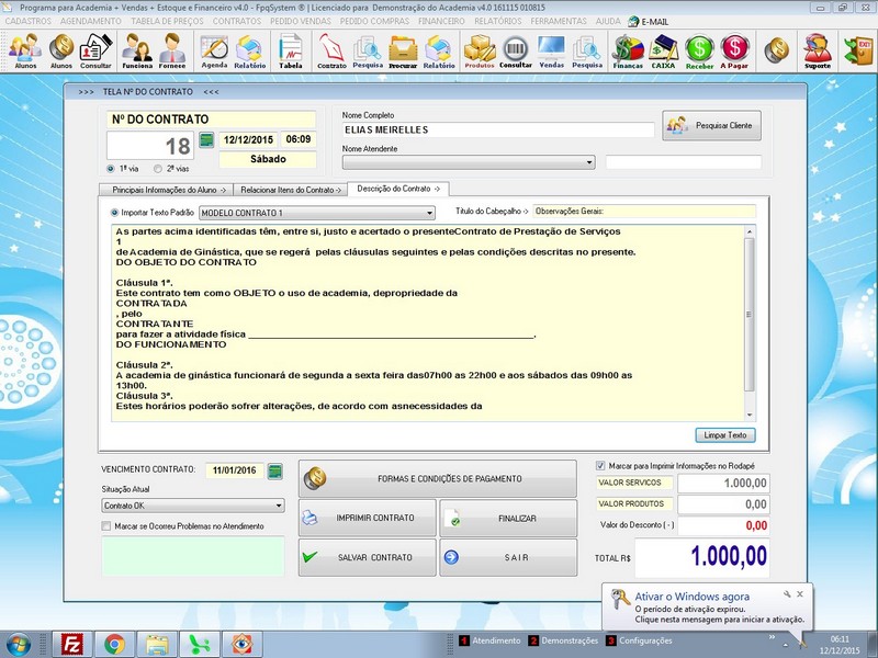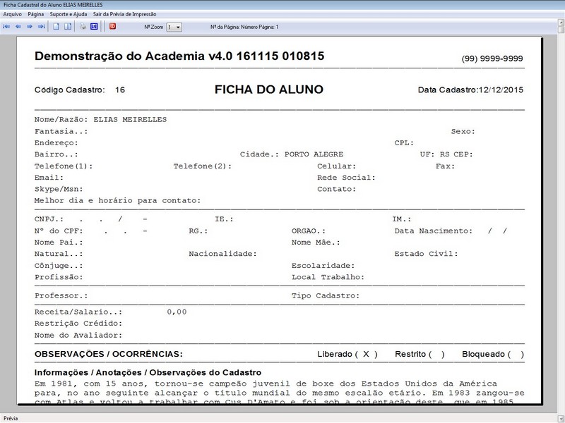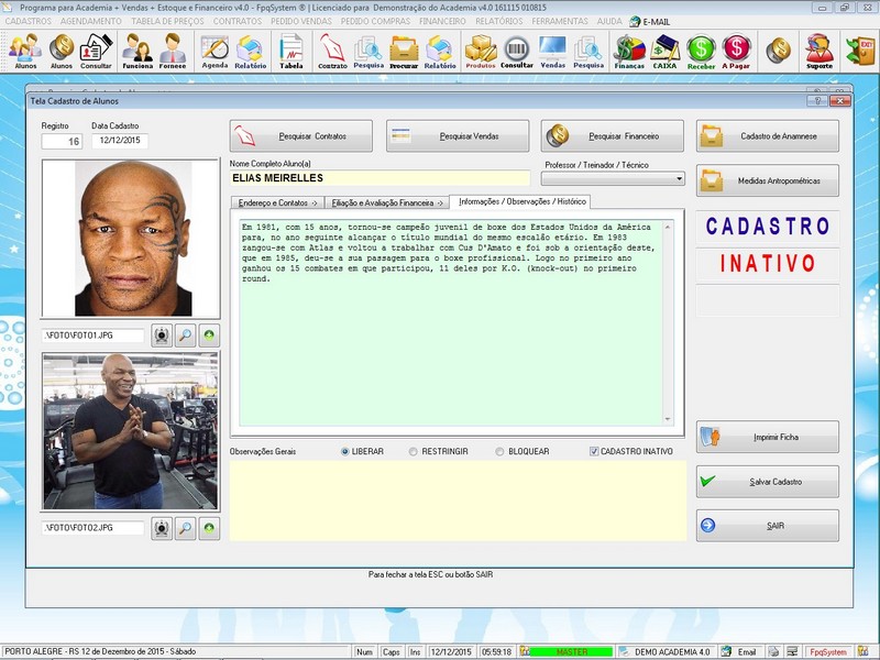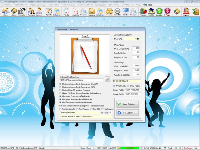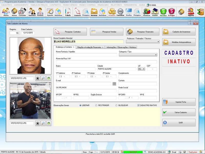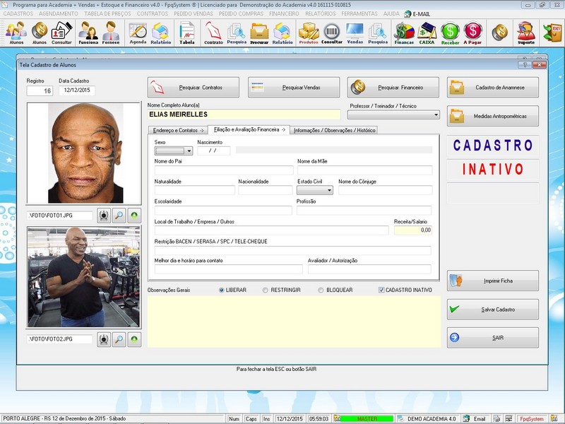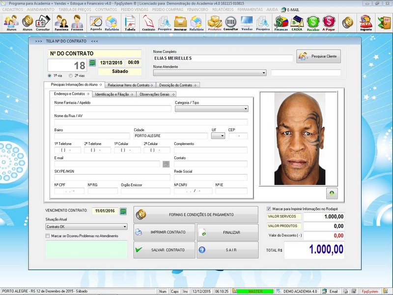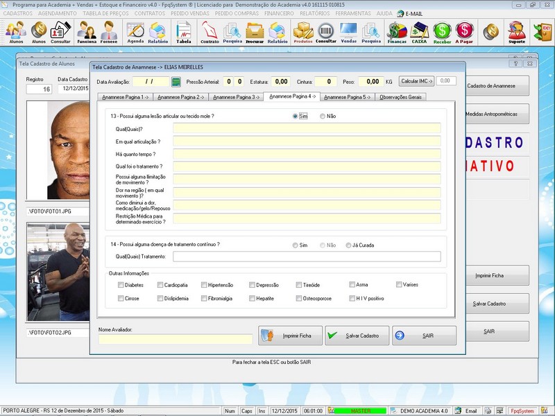 Contratos / Cadastro de Alunos com foto / Cadastro de Anamnese /