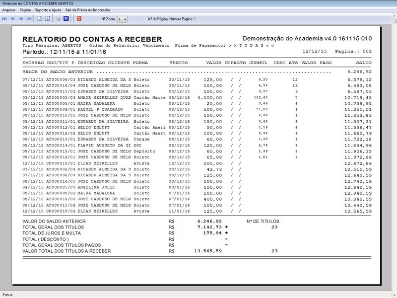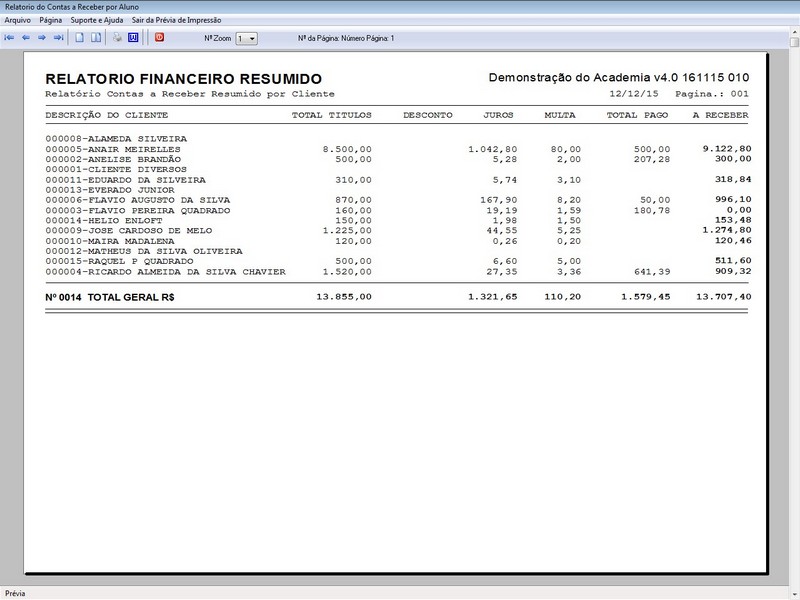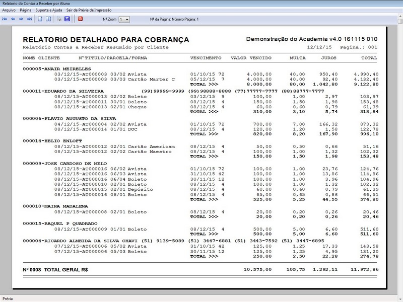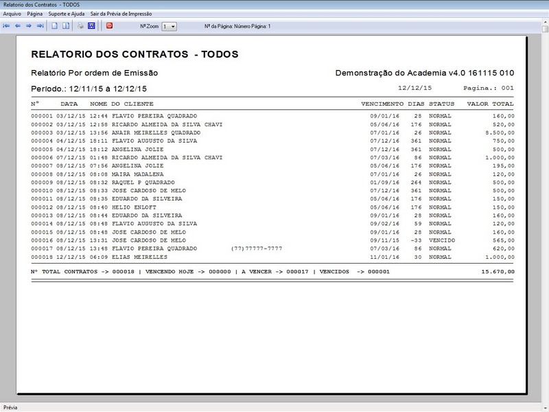 Lembrete Financeiro / Lembrete de Contratos / Relatório dos Contratos