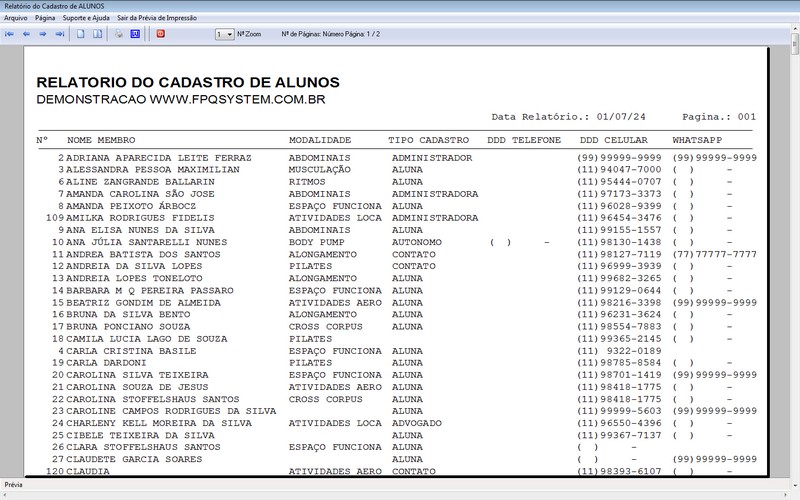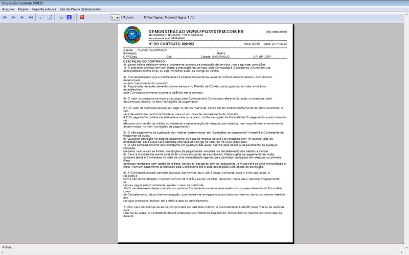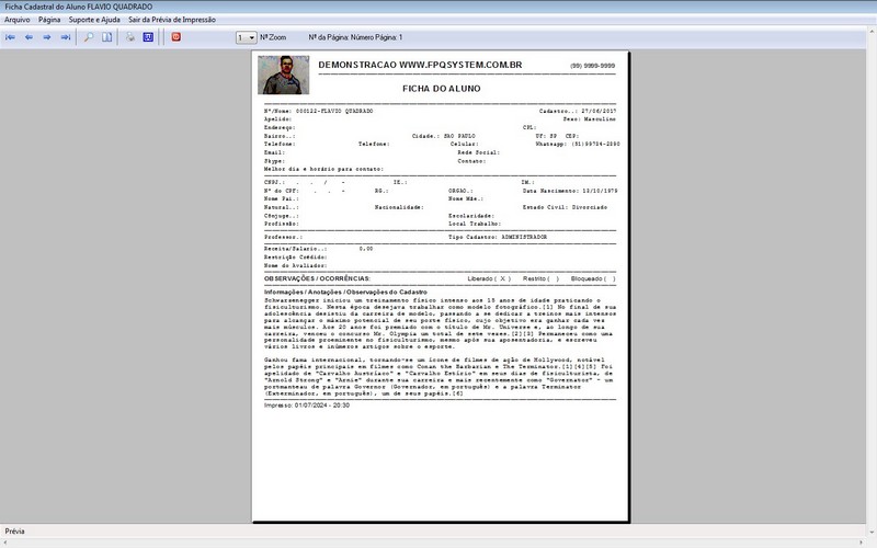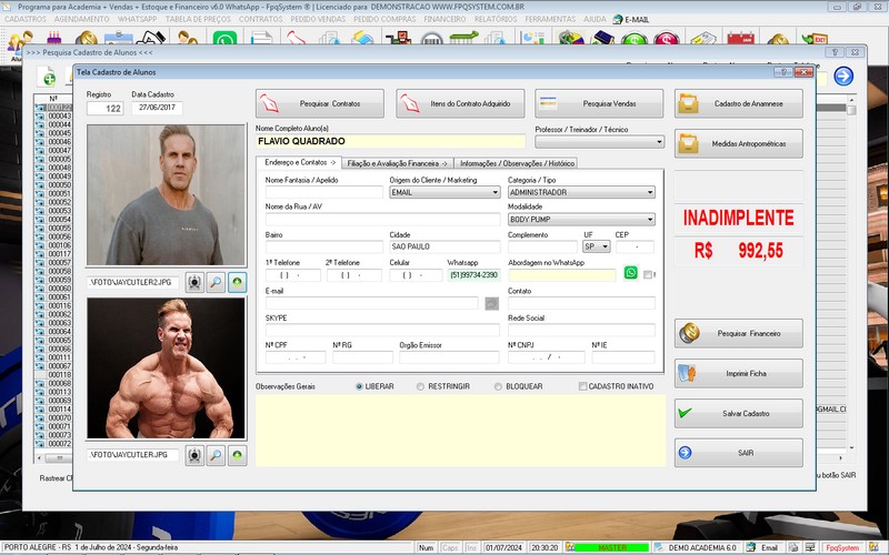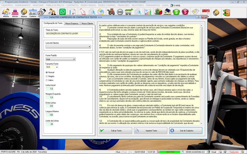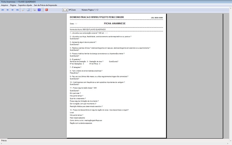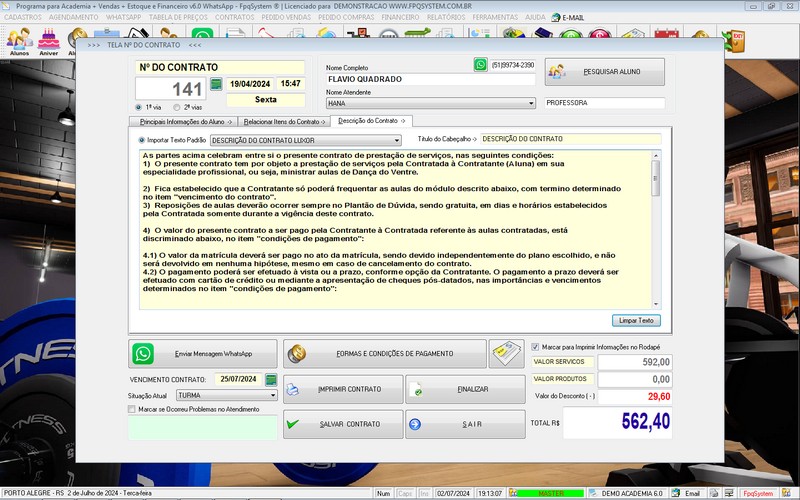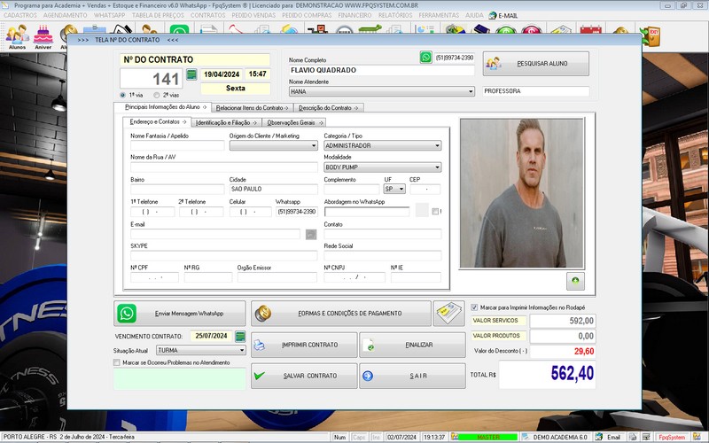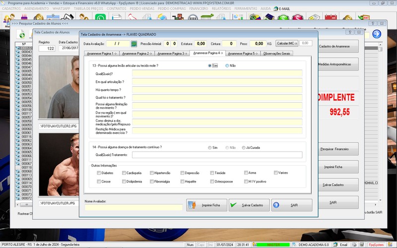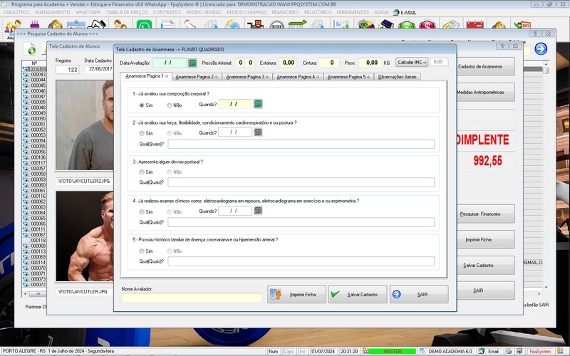 Contratos / Cadastro de Alunos com foto / Cadastro de Anamnese /